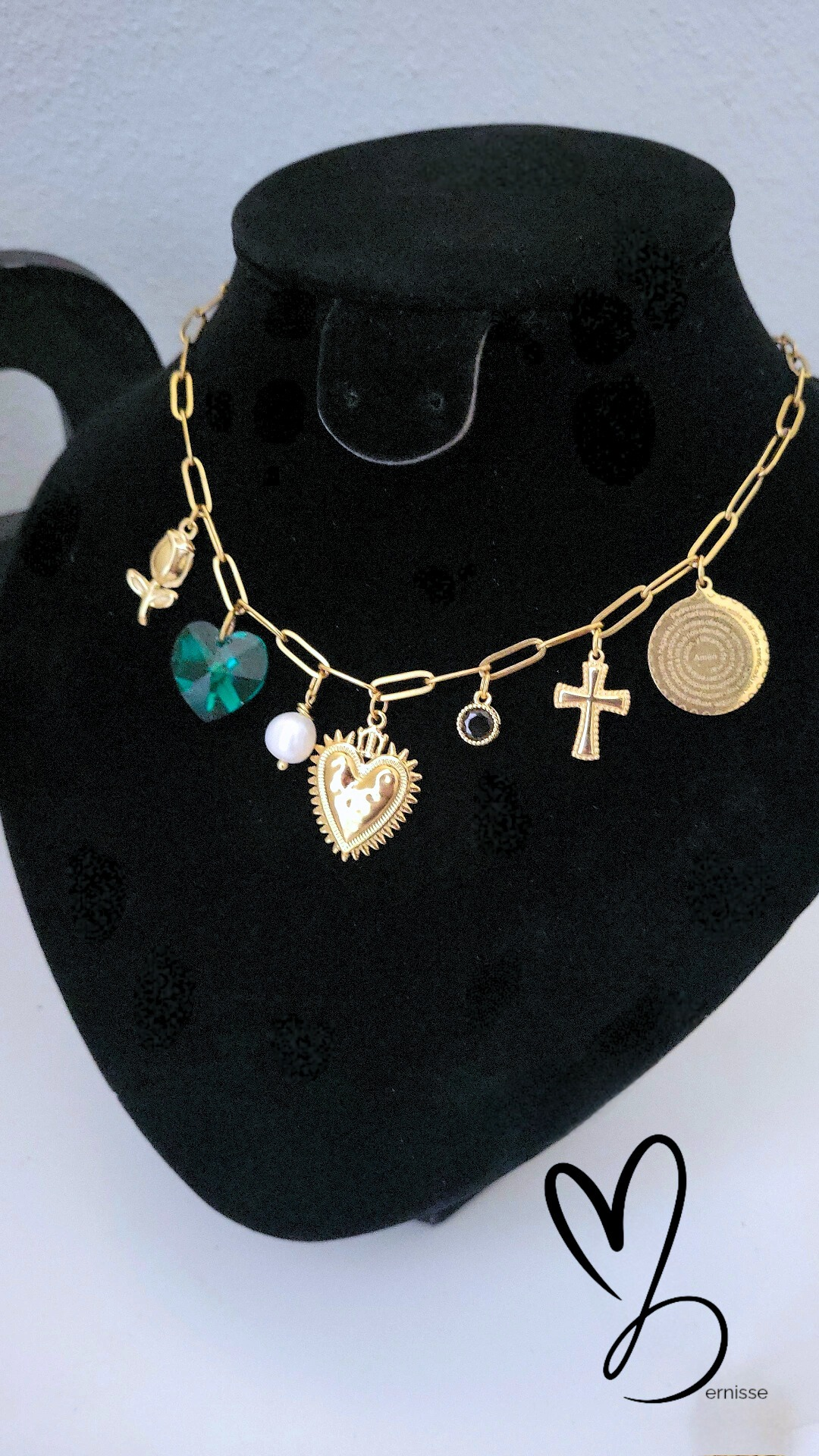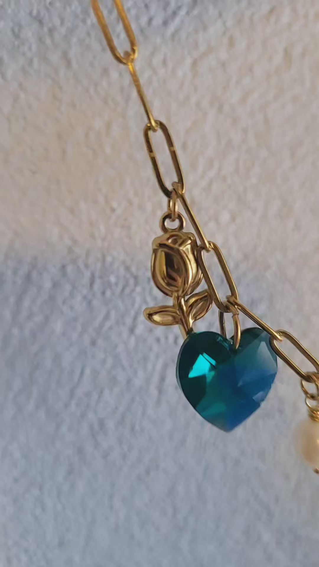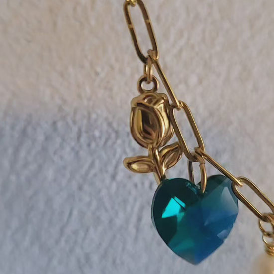 Stainless Steel, Cristal (corazón verde), Perla de agua dulce