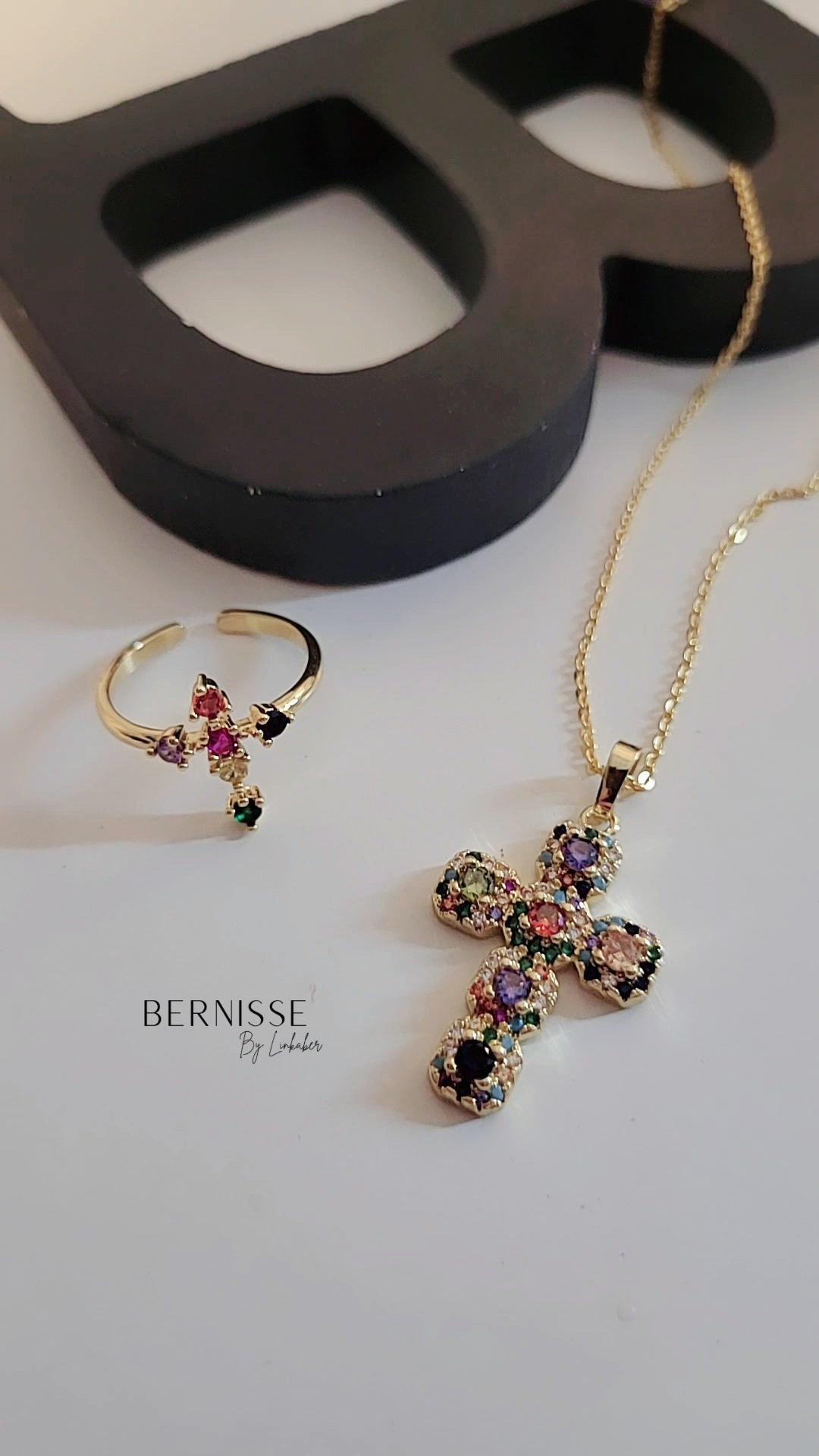 Sortija en gold plated 18k y zirconia de colores