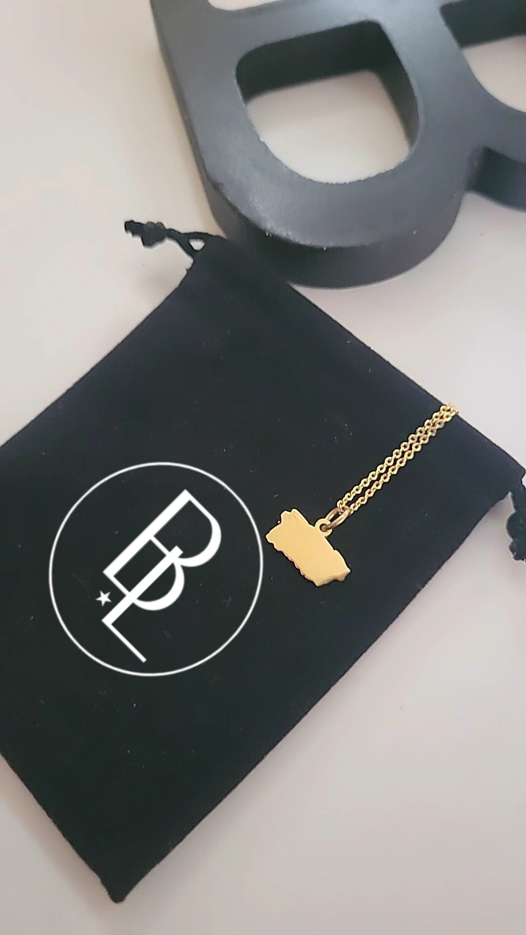 Cadena con mini mapa de PR en stainless steel