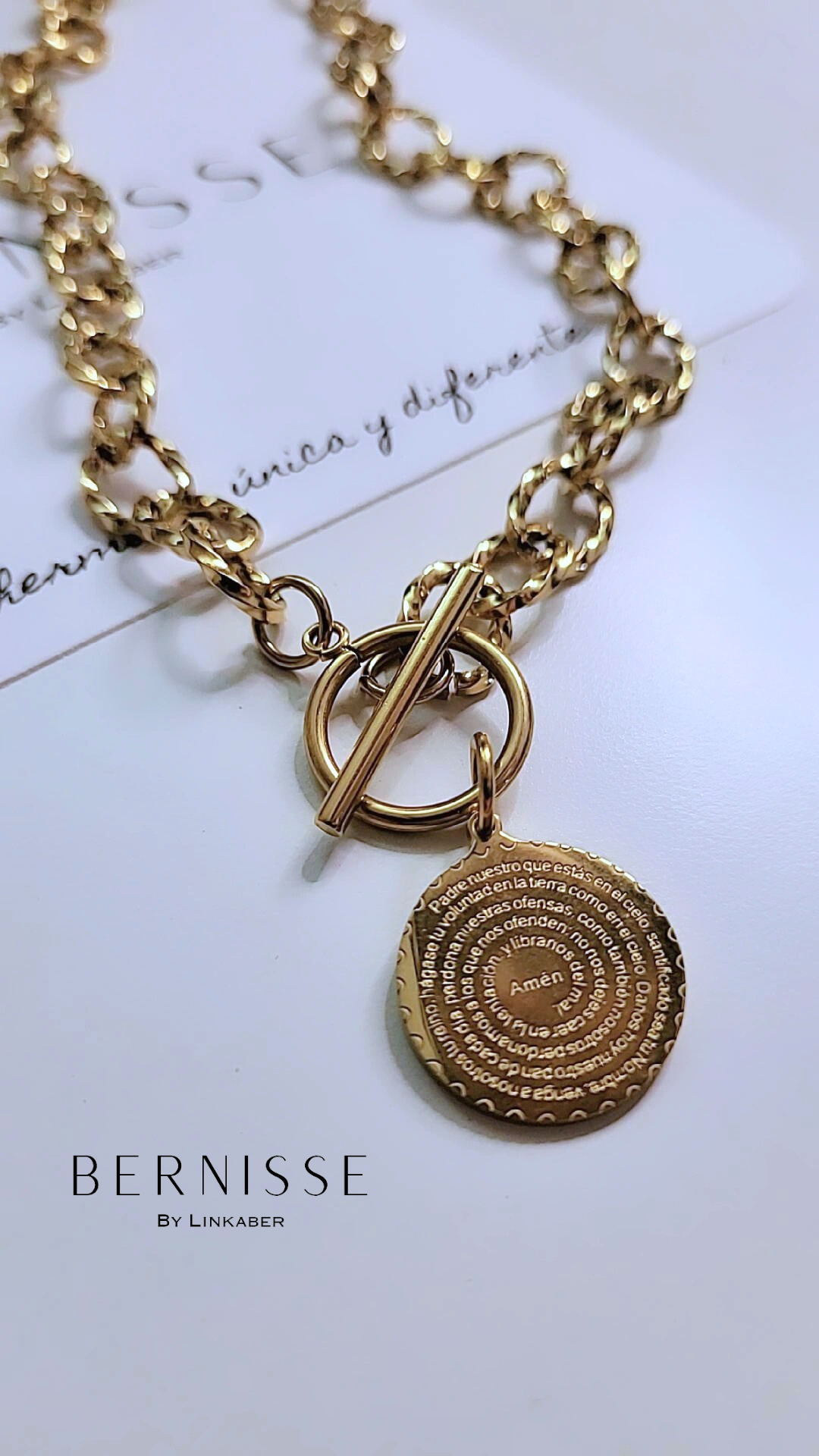 Collar en stainless steel de 17 puñgadas de largo con el "Padre Nuestro"